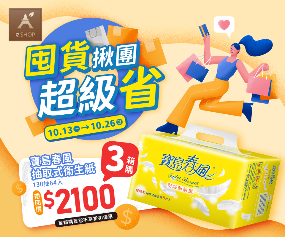活動專區[囤貨揪團超級省 | 寶島春風衛生紙3箱$2,100]