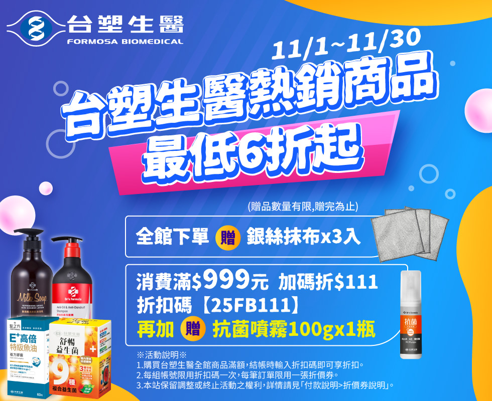 台塑生醫 | 熱銷商品最低6折起 滿額折$111