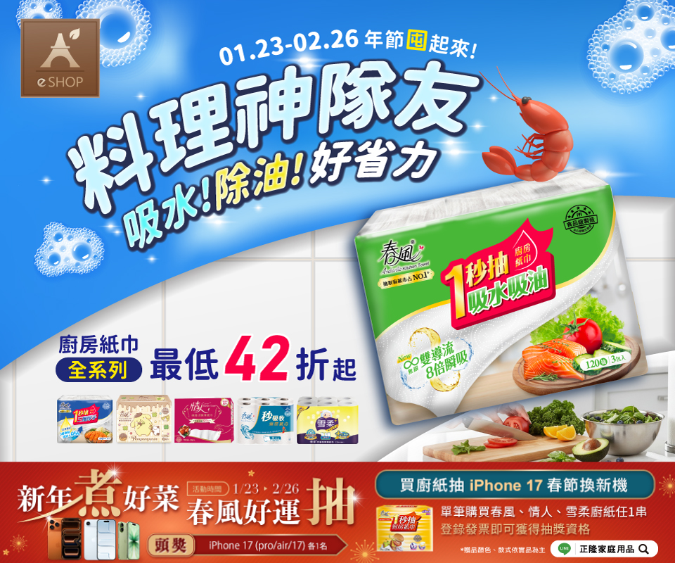 春風巧撕秒吸收捲筒式廚房紙巾120組48入