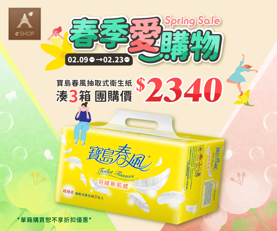 活動專區[春季愛購物 | 寶島春風衛生紙3箱$2340]