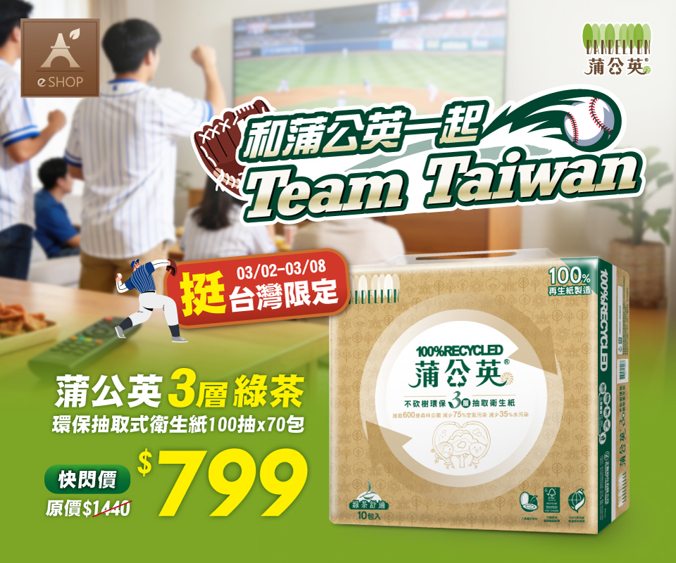 活動專區[Team Taiwan應援價 | 蒲公英3層環保衛生紙$799]