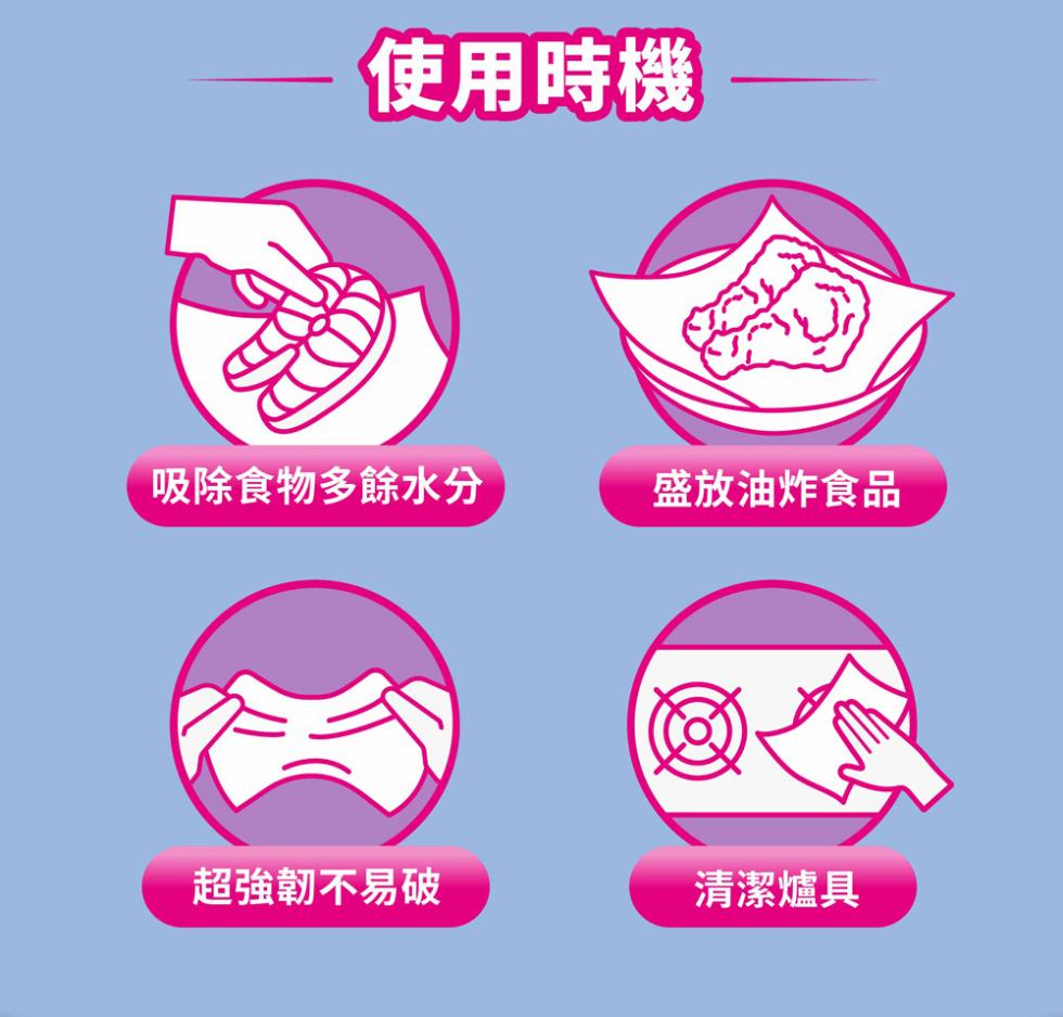 ‧ 超厚手-業界唯一三層紙張‧ 吸水強韌NO1-SGS檢測佐證‧ 安心接觸生熟食HACCP食品級驗證‧ 大小隨意撕-巧撕設計用更省‧ 錯點壓花-交叉曲線壓紋,導流超吸收