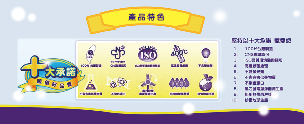 ‧品質/環境管理系統經ISO 9001/14001驗證‧不含螢光劑,使用安心‧迅速吸水力、柔韌不易破