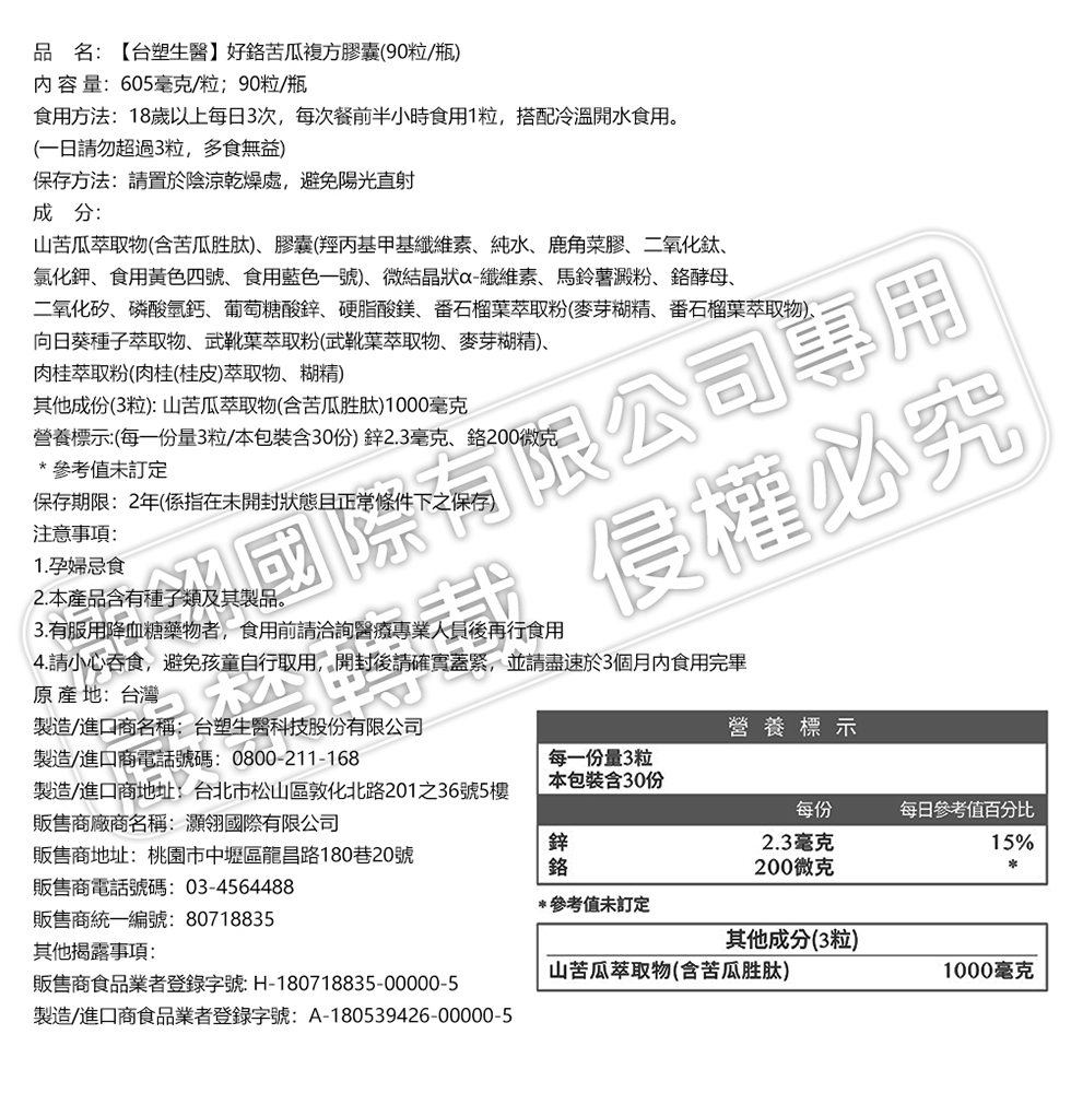 【台塑生醫】好鉻苦瓜複方膠囊(90粒/瓶) 5瓶/組