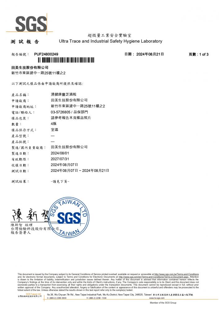 成 分:靈芝 Ganoderma lucidum(鹿角靈芝子實體萃取物(太空包培養))、賦形劑(聚乙二醇)