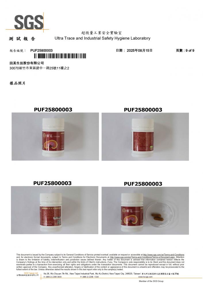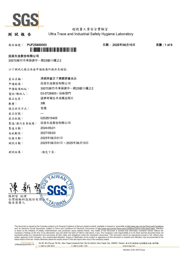 成 分:靈芝子實體萃取粉末(麥芽糊精、松杉靈芝 Ganoderma tsugae 濃縮萃取物 / 太空包培養)