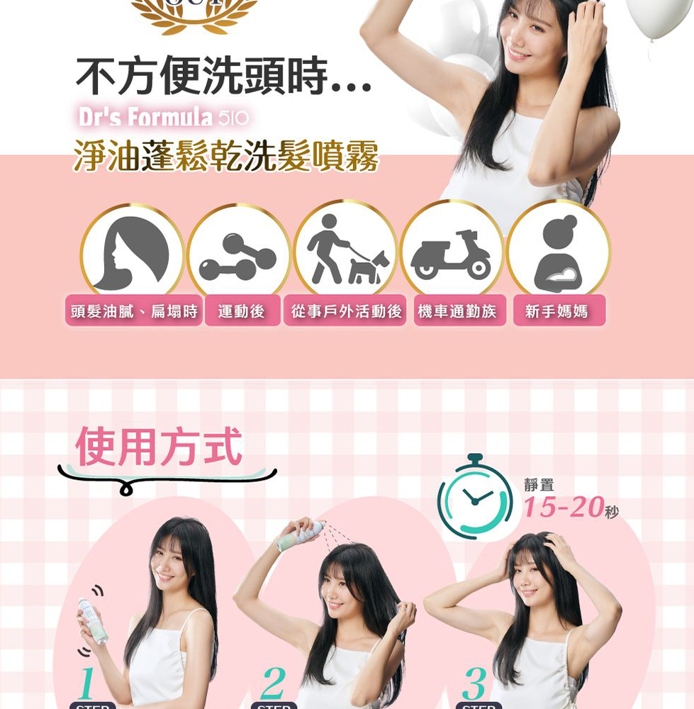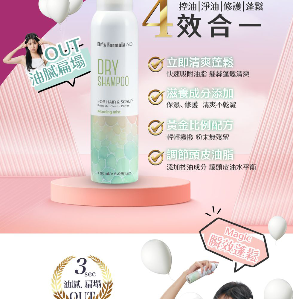 商品規格:《台塑生醫》Dr’s Formula 510淨油蓬鬆乾洗髮噴霧(繁花淡香)180ml