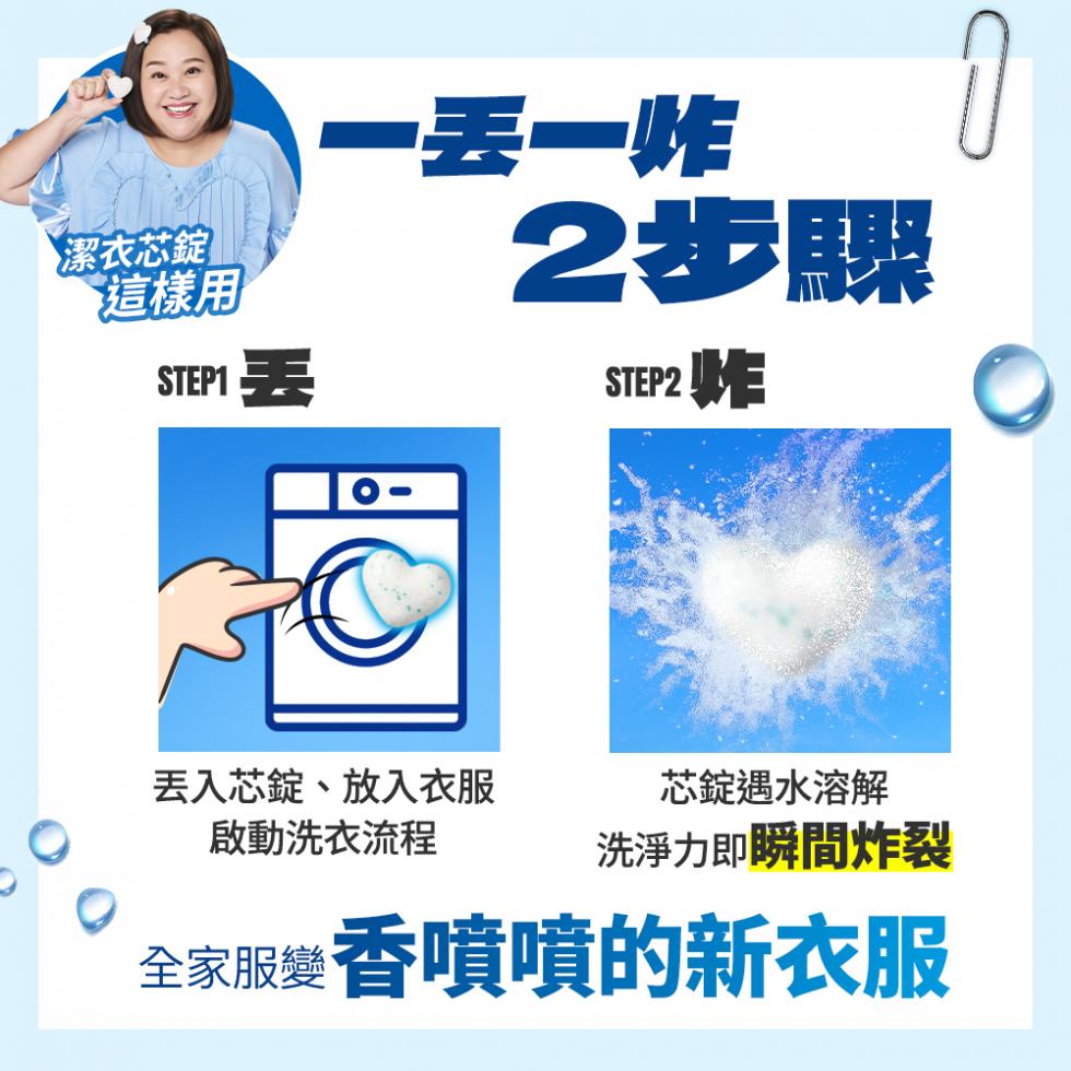 【一顆即淨】超濃縮配方,一顆就可以洗6kg(8-10件)衣物,省水省時。體積小不占空間,能長期保存,洗衣更輕鬆。